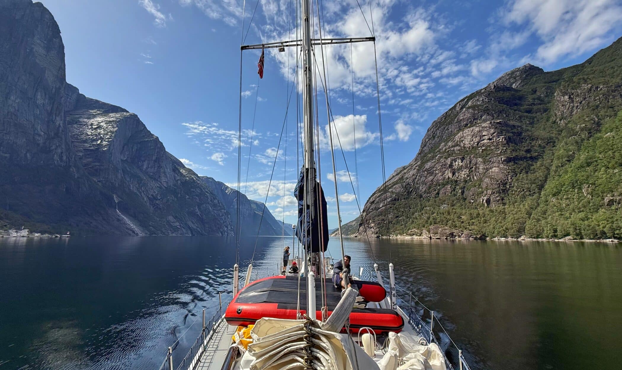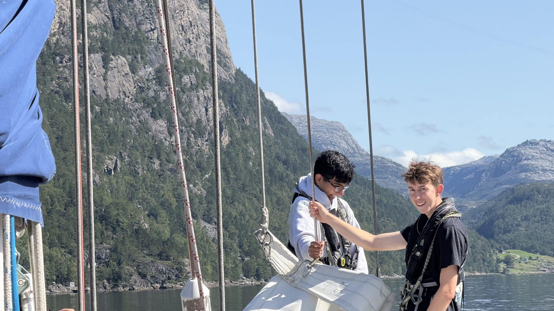 As Leg 1 came to a close, the second crew, consisting of 10 Lower Sixth boys and two staff, flew to Stavanger to meet CatZero and make the crew change. The crew experienced a further four days of glorious sailing in the spectacular settings of Vindasfjord, Josenfjord and the famous Lysefjord, with time to relax, swim and share some delicious self-cooked food.