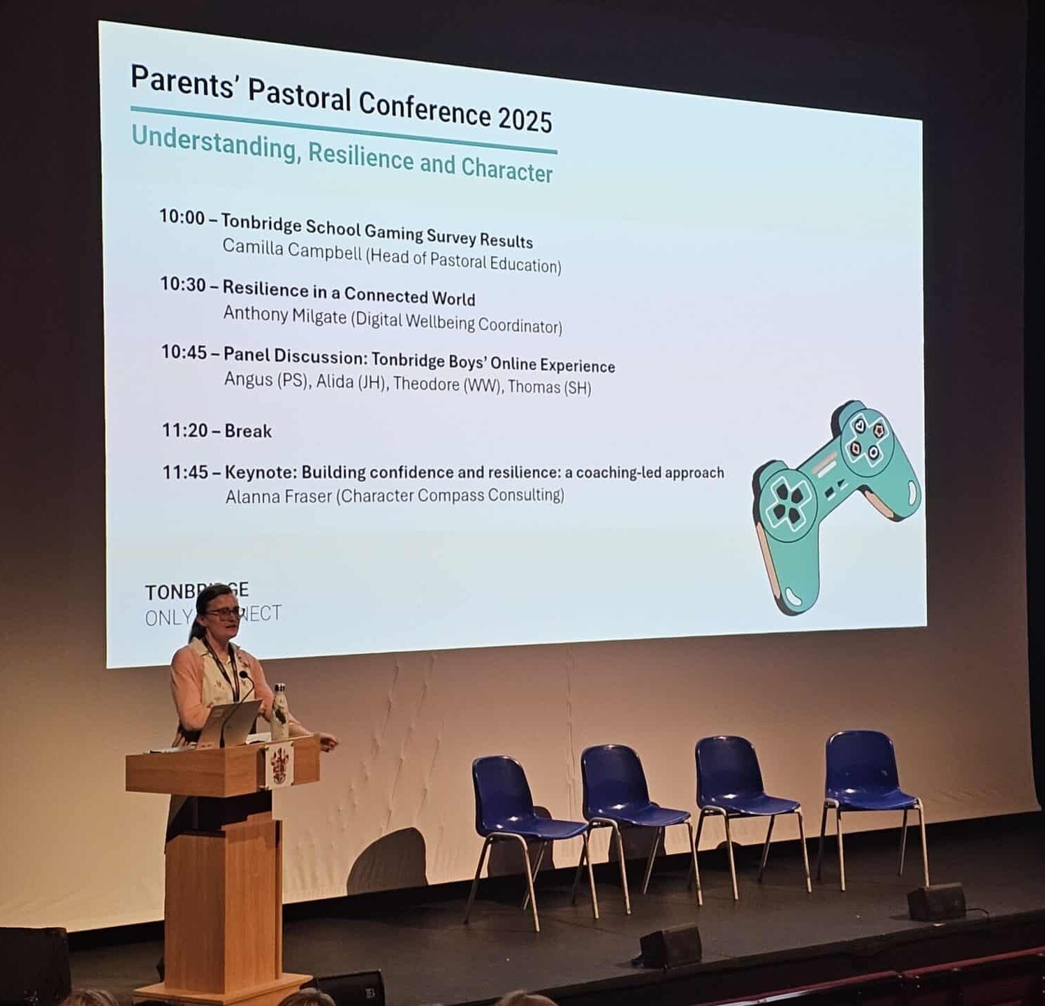 This year’s theme was “Building Resilience and Confidence in Young People”, with sessions including the Tonbridge School Gaming Survey Results, Resilience in a Connected World, a pupil panel discussion with Alida (JH5), Theo (WW5), Thomas (SH4), and Angus (PS3), and finally, a keynote lecture delivered by Alanna Fraser, from Character Compass Consulting. Alanna’s session, entitled Building confidence and resilience: a coaching-led approach, sought to equip parents with practical tools to facilitate communication and supportive conversations.