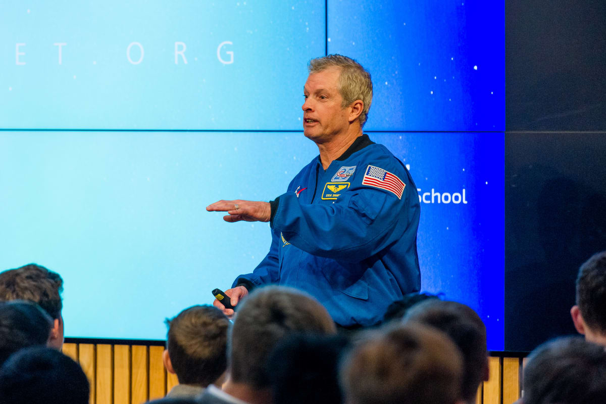 The talk by Dr Steve Swanson, called Commanding the ISS (International Space Station), formed part of Mission Discovery Week at the school.