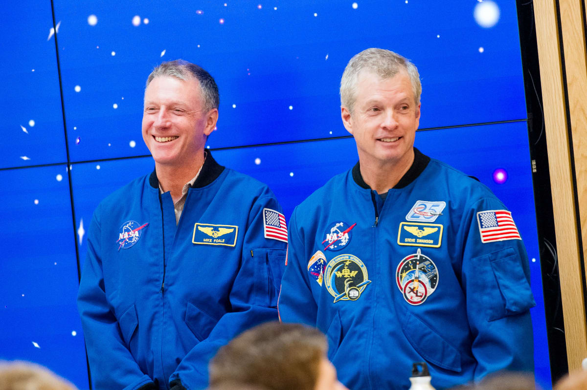 Pictured above: NASA astronauts Dr Michael Foale (left) and Dr Steve Swanson.