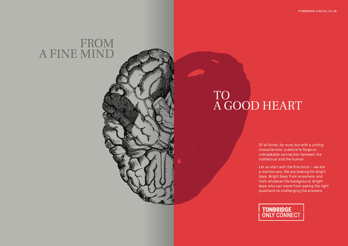 “This led us to conclude that, at the heart of the Tonbridge brand, is a dictum coined by the famous Old Tonbridgian, E.M.Forster: ‘Only Connect’. Forster was encouraging the reader to make the connection between the head and the heart, between thought and feelings. Only then, so his argument goes, can we live a life of purpose and become a force for good.
