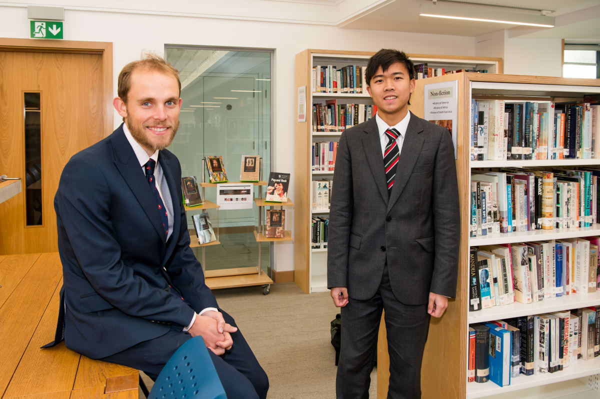 James is pictured in the School Library with Noah Hillyard, Tonbridge’s Head of History.