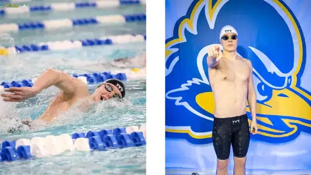 Denys is already proving his worth for the Blue Hens, claiming a Bronze Medal at the CAA Championships in the 500 Yard Freestyle, with a time of 4:23.97 – a swim that also saw him become the Freshman record holder.